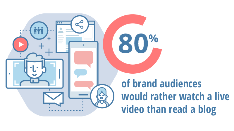 Eighty percent of brand audiences would rather watch live video from a brand than read a blog, and 82% prefer live video from a brand to social posts.